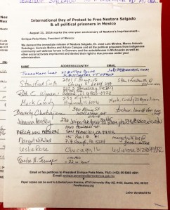 Members and supporters of the Libertad para Nestora/Freedom for Nestora – U.S. Committee gathered over 1200 signatures on a petition to Mexican President Enrique Peña Nieto that states: