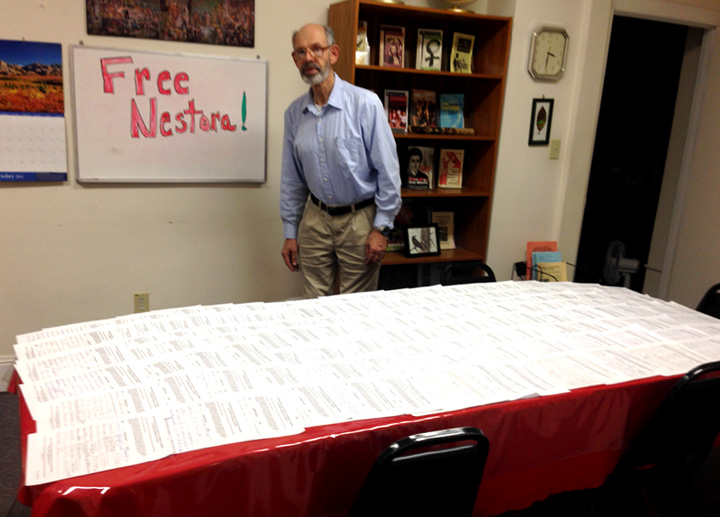 Members and supporters of the Libertad para Nestora/Freedom for Nestora – U.S. Committee gathered over 1200 signatures on a petition to Mexican President Enrique Peña Nieto that states: