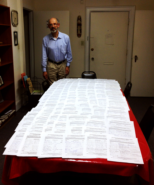 Shown with the petitions is Fred Hyde, who wrote the cover letter shown below on behalf of the campaign.